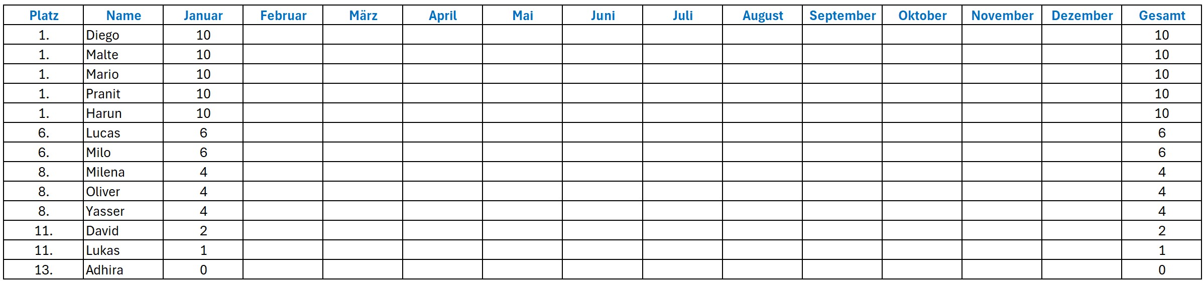 Spieler des Jahres Eine Übersicht der Monatsblitzturniere
